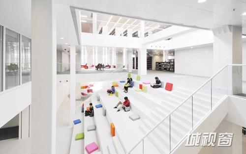 如果说整体空间的结构体现设计理念的话,那么细节处的创意处理则更能体现人性化与艺术相结合。前台由低到高的弧形设计既考虑到轮椅人士,也方便学生借还书;中庭楼梯无支柱的设计,节省楼梯后的空间,进行艺术品展览;藏书过万的阅览室虽没大改动,但细心的学生会发现,周围书架不仅变成白色,还转了90度角,现在所有的书都环抱中间的自习桌椅;新翼内书桌台面全部配有插座方便使用电脑等。