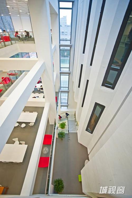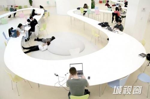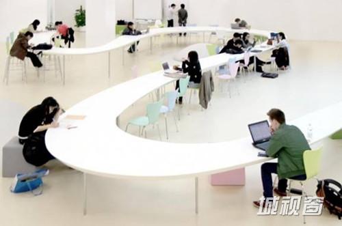 不过最具特色的还属犹如山水国画般的“进学园”。冯少文笑言,“进学园”英文直译为学习花园,S型长桌高低错落,似乎是邀请同学走入花园,长桌配以不同颜色的?好似花园中的花朵,“加上水池天窗折射出波光粼粼的阳光,整体环境就像山水国画一般”。