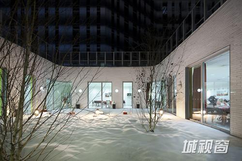 通过体量上的试验,设计者意识到,外墙之间的分离导致立面微妙的错落,打碎了体量整体感。为了实现这一手法,每层楼板运用了对应的铺面,每个房间采用了落地窗,使建筑回归人性化尺度。