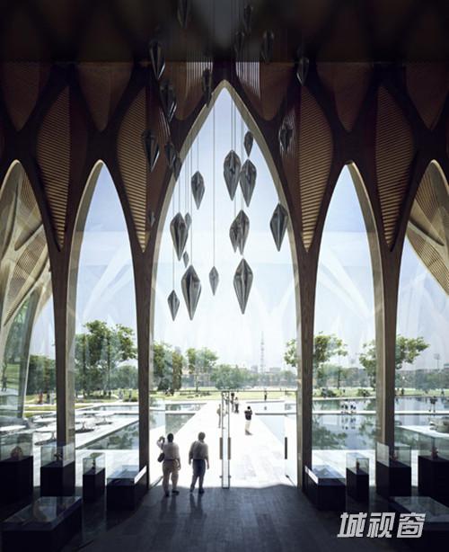 哈迪德的设计融合了来源于吴哥窟和柬埔寨其他地区标志性建筑的几何形式,建立了内外部结构相互交错的“一个复杂的空间构成”。