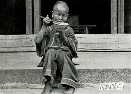 用筷子吃饭的儿童