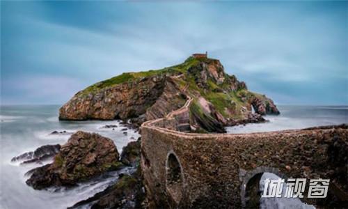 11.西班牙的龙脊海岸(Gaztelugatxe),远看桥就像蜿蜒的龙身,岛上座落的修道院院外有口吊钟,传说和心上人走完这237个台阶一起敲钟,两人的爱至死不渝。