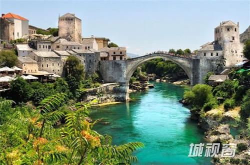 13.波黑,莫斯塔尔古桥。世人对于这座古桥建造过程及技术可说是所知甚少,那时的苏丹下令建造,若失败就处以死刑,结果成就这座世界最宽的人造的拱桥。
