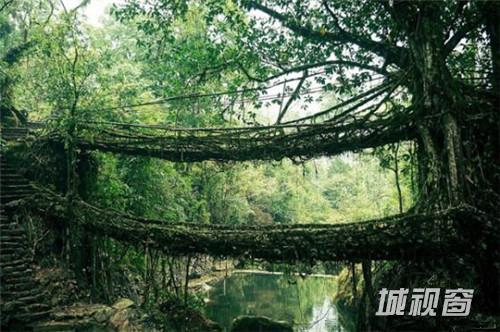 14.印度的这座树根桥(Root Bridge)位于东北部的乞拉朋齐,当地人不造桥而是种桥,过程漫长,树根桥在时间的流逝中愈加结实。