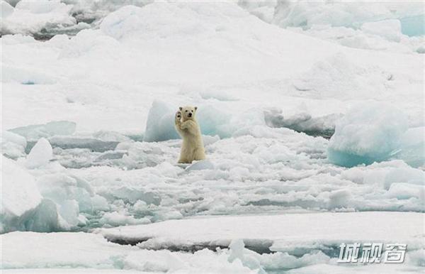 兴奋无比的北极小熊在斯瓦尔巴德群岛的浮冰上,摄影:Colin Mackenzie