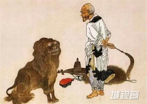 原是一位勇猛的猎人,连狮虎也能猎杀。后出家戒杀,将证阿罗汉果时,有两只小狮子走到他身边感激他放下屠刀。成道后,他就将这两只小狮子带在身边,故人称“笑狮罗汉”。