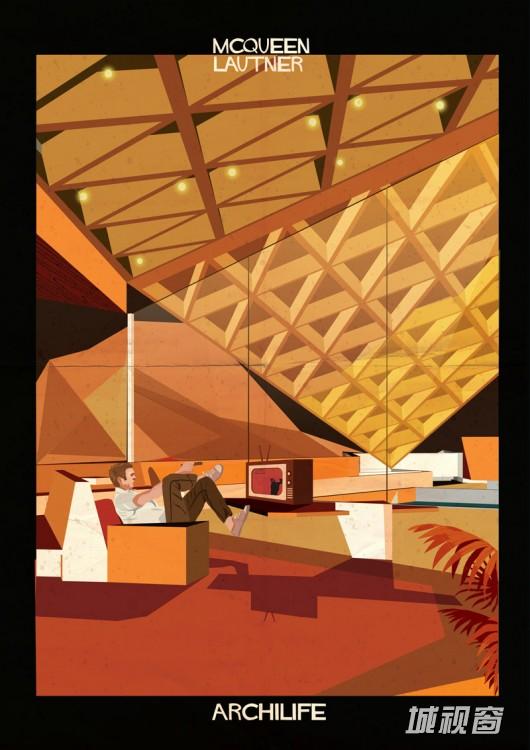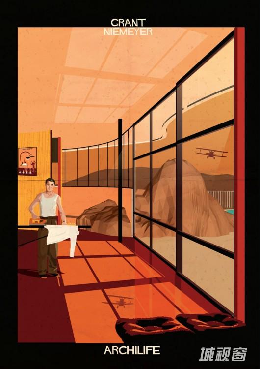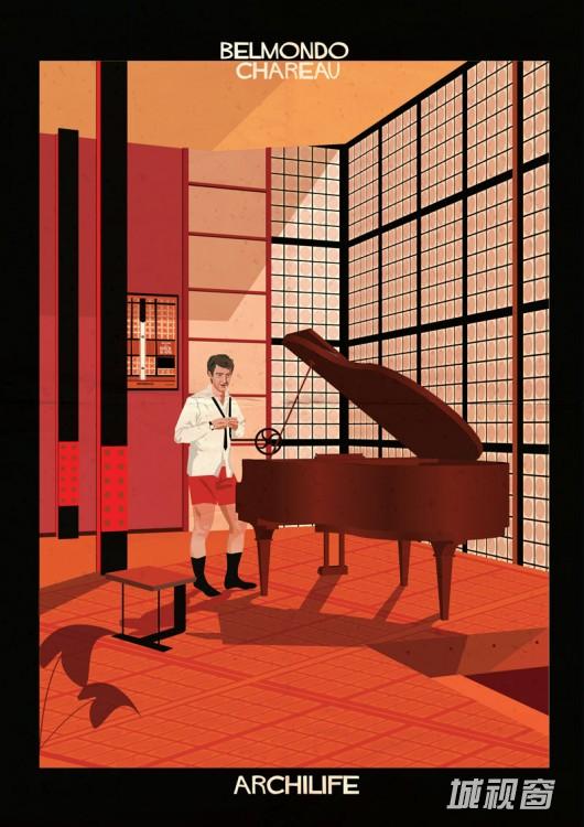 Federico Babina又回来了,这次他带来的插画作品ARCHILIFE将众多好莱坞明星的日常生活与全球最知名的现代派室内设计相结合。“我从不喜欢建筑展示时缺少生活化的样子,无菌、洁净而中性”,Babina解释说,“我经常喜欢想象在这些静态图像中人们是怎么生活的。”