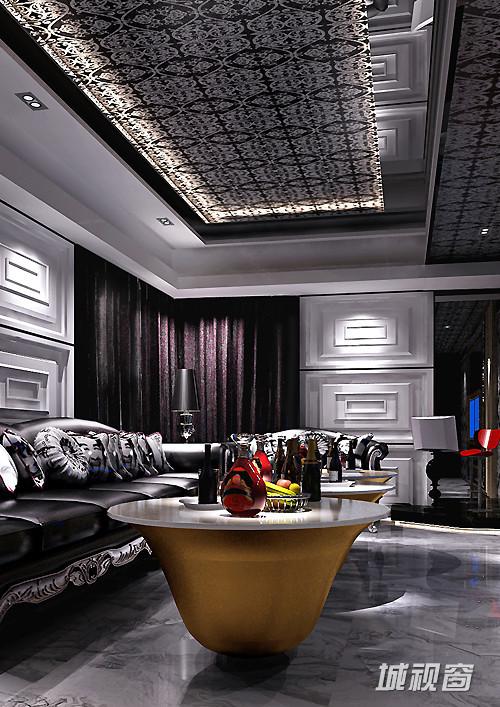 由于KTV空间的特殊性,在运用欧式装饰元素时尽量简化。通过对比等设计手法突出空间时尚性。虽然摒弃了传统欧式繁琐的线条,但是用适度夸张的造型和强烈的色彩对比来处理空间,结合运用巧妙的欧式元素,使奢华典雅的神韵和时尚现代的气质,在这空间中完美的融合。