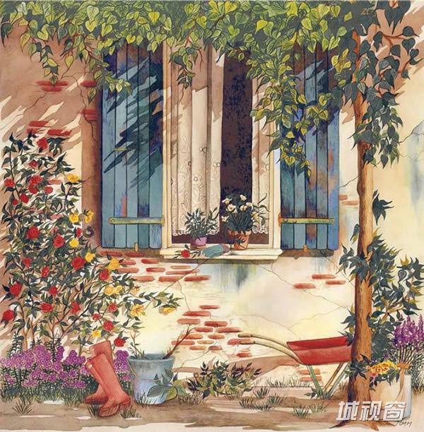 Pomm的水彩画通过细腻的描绘,她眼中的世界是如此的美好、温暖、唯美。很乡村,很宁静的感觉,仿佛置身在画中。随着季节更替景色的窗台、阳光、植物、孩子,恬静如诗般温暖。