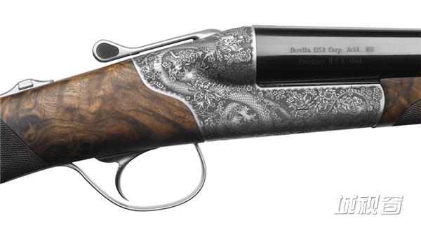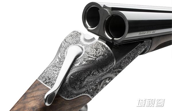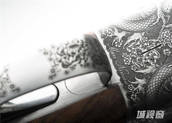 猎枪上的雕刻是为了向作为野鸡家乡的亚洲致敬。这款设计在制作的过程中应用了高科技激光技术。确保了整个机匣的表面都围绕着最好质地的雕刻图案,在所有的雕刻细节中有着深刻的对比和尖锐的处理方式