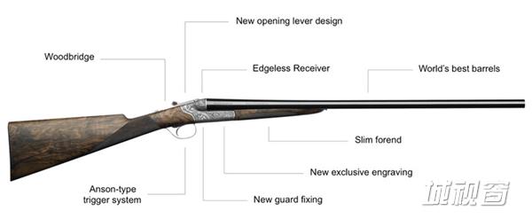 将传统猎枪的机匣尾部调低,在机匣和安全掣子之间新增了一个胡桃木设计,就像是在两个机制之间建立了一架连接的桥梁