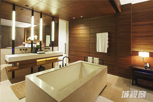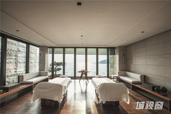 在青岛涵碧楼1500米深海温泉,巨石堆砌成屏障,温泉从巨石上方如水瀑般滔滔而下。裸身在泉水冲激下,深深感受着身体解放的舒畅,在日月星空下与天地合为一体。