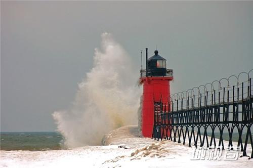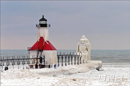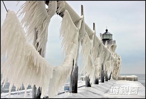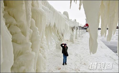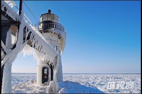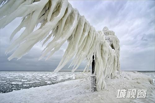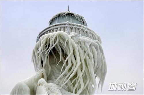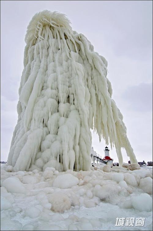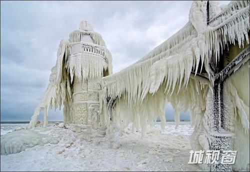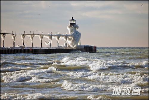 这是由环境和风景摄影师Tom Gill拍摄的在密歇根湖东南部一个建筑与自然结合的奇观,自然的风雪和海浪就这样在建筑的外层形成了一件浑然天成的外衣。