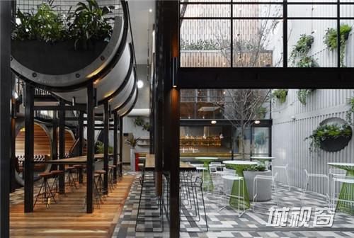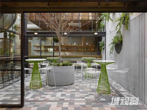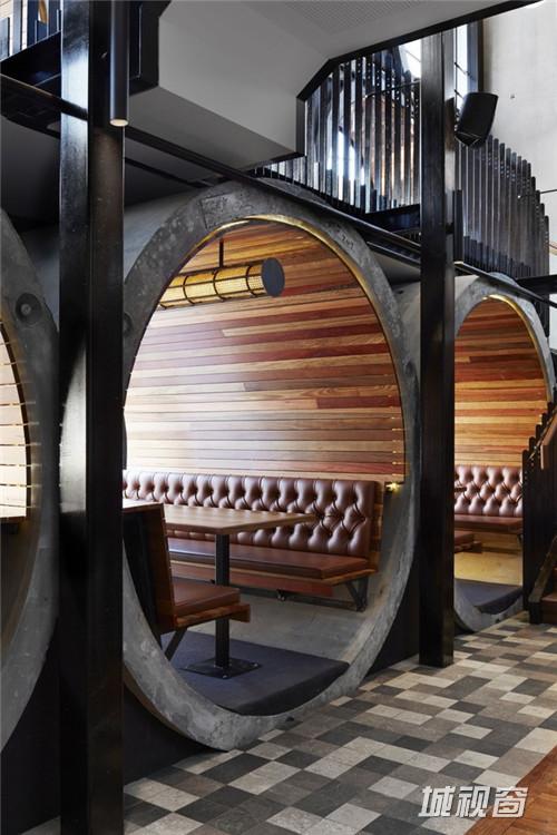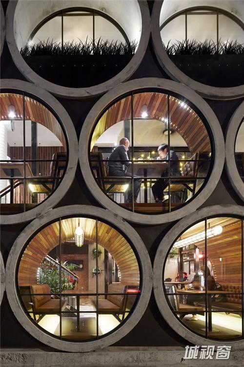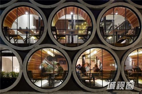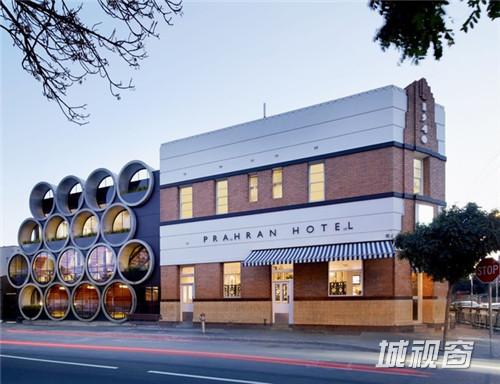 完工后的Prahran Hotel一改旧时深受装饰艺术影响的矫情风格,更具雄风的硬朗外墙设计古朴现代,正面望去,17个巨大的混凝土管道从酒店内部的就餐区直通街外,在内能够为客人提供私密的用餐环境和相对开阔的视野,并有效降低拘束感,在外则能勾起途人想入内一探究竟的好奇心,兼通过玻璃、水泥管与附在管道内壁的木头来显示雕塑艺术的原始美态。