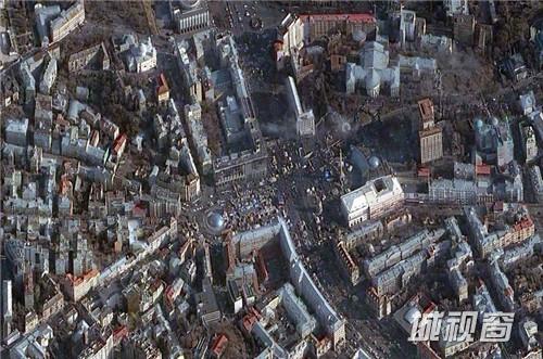 2014年2月份,在乌克兰基辅上空拍摄的照片,成千上万抗议者走上街头抗议。
