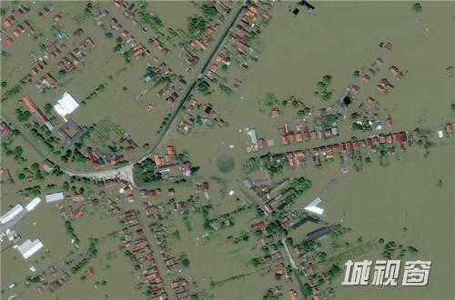 2014年5月份卫星在克罗地亚Gunja洪水灾区上空抓拍的照片,可以帮助救援人员了解情况。