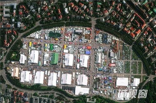 从空中可以看到慕尼黑一年一度的啤酒节盛况,包括巨大的帐篷。