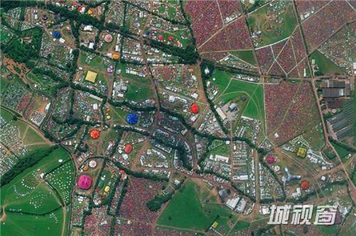 卫星照片显示格拉斯顿伯里音乐节惊人的观众数量。
