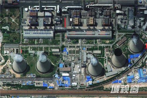 卫星图片显示中国河南省火力发电站的排放和燃料储备情况。