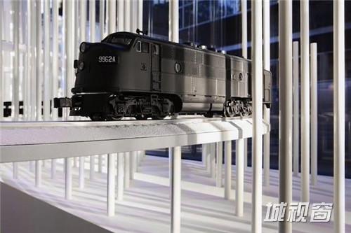 ▲ 一辆特别定制的火车模型在店里“行驶”