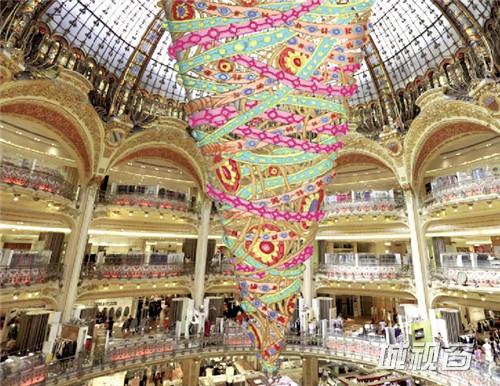 ▲ 老佛爷百货商场中树立了一颗颠倒的巨型圣诞树
