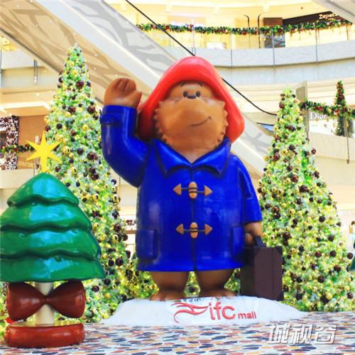 国金 ifc 在陆家嘴立起了一颗独特的圣诞树——来自英国的柏灵顿宝宝熊。这个高达 10 米的充气公仔也是全球最大的柏灵顿宝宝熊。作为配合,商场内也添置了柏灵顿宝宝熊来装点节日气氛。