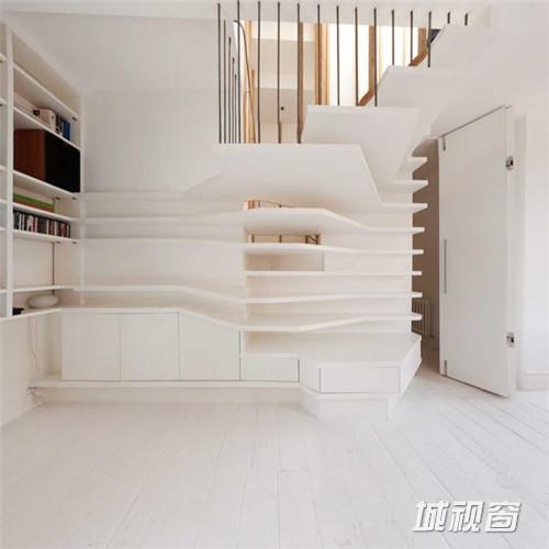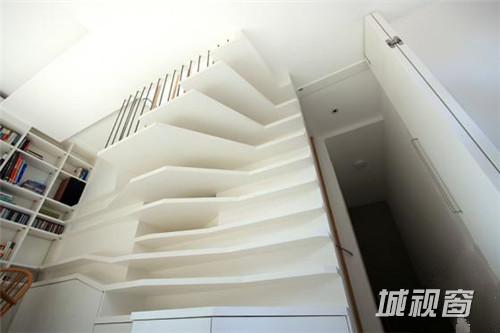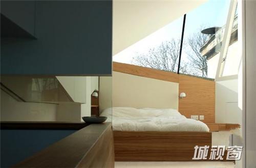 极富现代感“鸟巢”式灵动公寓设计,交错的楼层将空间进行了细分,创造出更多的空间使室内空间看起来更大。伦敦知名工作室Atmos Studio“鸟巢式公寓”设计成功处理了空间和光线之间的关系,使原本缺乏空间和采光的公寓发生变化,为即将入住的音乐家兼演员创造了一个灵动的空间,在密集的城市布局中找到了一个小小的切入点。通过最大限度地利用该空间的陈旧的主结构,以空间、窗户和家具陈设的严密装配为特色,室内的每一个构件都可以同时发挥多种功能。蝴蝶式双坡屋顶的斜面上有一个天窗,天光通过天窗照射到室内空间。交错的楼层将空间进行了细分,创造出更多的空间使室内空间看起来更大。金丝原木细条将处于中心位置的楼梯井的每一个台阶的轮廓勾勒出来,并一直延伸到办公区的书架和生活区。同样醒目的木质装饰构成极富现代感的框缘,一直延伸到每一个堆叠的卧室。木质装饰作为一个代表元素以各种形式在室内出现。白色的墙面将光线反射进每一个房间。镜子使空间感成倍增加。