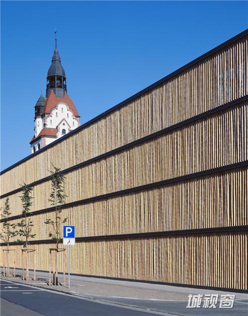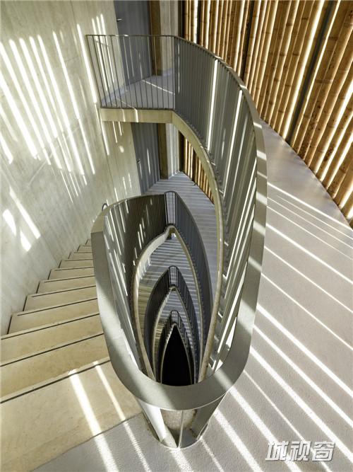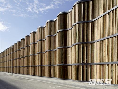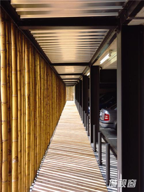 楼板外侧环绕200mm宽的H形钢,直径于8-300px不等的竹子,均匀地固定在环绕主体结构的H形钢上。起到降低噪音,确保通风和自然采光的多重作用。