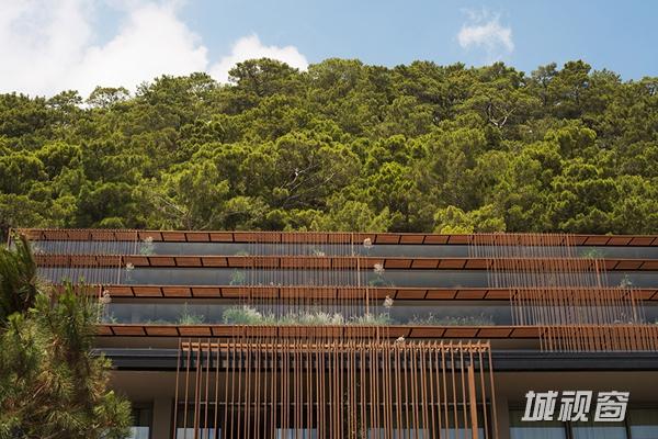主楼有餐厅,水疗中心,商店和酒店大堂。建筑基本构造元素是既可做遮阳板又可作为栏杆的木质构件。这些围绕主楼的木质构件,像一层薄网,与周围浓密植被发生着全新的关联。