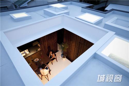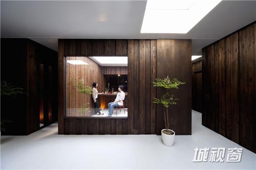 迷宫盒子 Boundary House位于日本千叶县靠近乡下的地区,由Atelier Tekuto工作室设计。迷宫盒子 Boundary House是一座讲求经济性的住宅,主人希望在尽量节约成本的情况下能够在这里生活得更加贴近自然,享受宁静与惬意。由于房子的场地紧挨着一条道路,所以建筑采用了完全内向型的设计,焦化的雪松木将整个空间包裹起来,这种材料并沿用到室内的墙壁上。同时内部的庭院为生活提供了享受自然的空间,由于建筑为单层,所以所有采光几乎来自除了内庭院外的15个天窗。所有空间在这个大盒子内相互错动融合,就像一个有趣的迷宫阵一般。