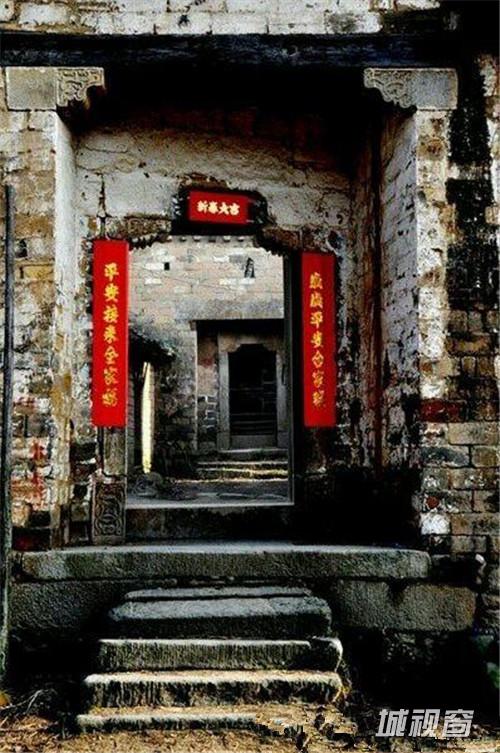 贴着对联的老民居,春联的词太大众化了,印刷品的,和老房子的味道有点隔阂