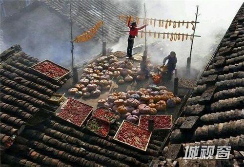 晒秋 整体看是很漂亮,全是秋天成熟的颜色
