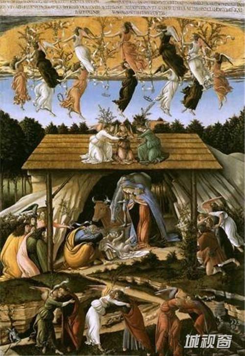 波提切利是文艺复兴前期的著名画家,最具代表性的《维纳斯的诞生》即出自于他之手,而此幅《基督诞生》则被认为是他的临终遗言的作品。艺术家从描写美神诞生转向基督诞生,由爱欲欢乐,转向十字架代受罪责的救恩,因而使基督诞生,成为天人同谱欢愉的乐歌。由此可见价值体系与信仰,如何影响艺术家的绘画世界。