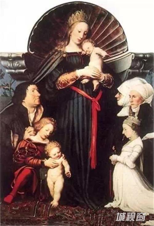 《圣母前的迈尔像》小荷尔拜因板上油画 1516年 146.5×102厘米