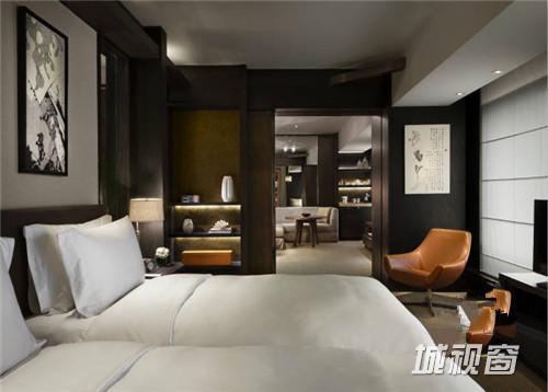 瑰丽以深褐色、灰色和黑白等为主色调,给人以优雅之感。 酒店外墙由青石建成,形成山景效果,其原始的触感则与高雅极致的室内设计相映成趣。尤其在高楼林立的中央商务区,给人一种从容不迫的空间感。酒店入口的盖篷和接待处所用的环保古铜色地砖为中国传统工艺者的手作,环环相扣的原木层叠图案,都是传统工匠的巧思。