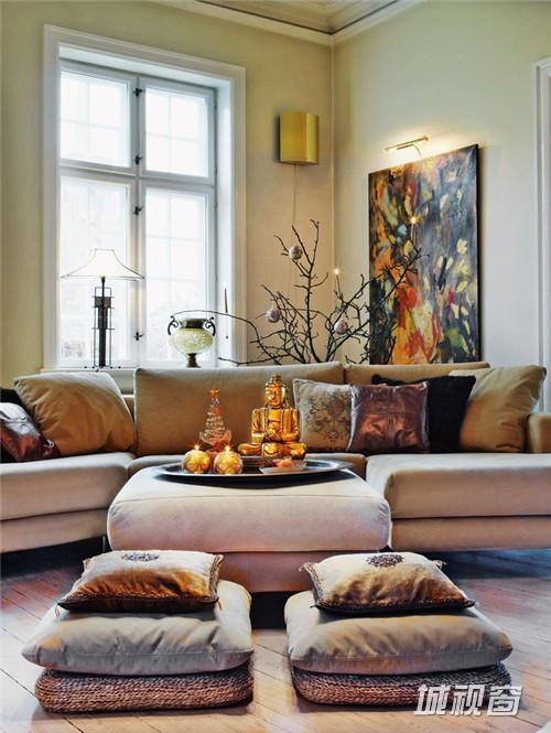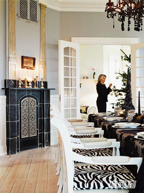 曾经富丽堂皇黑色琉璃瓦屋顶白色房子的市长官邸,而今却布置得如此温馨。房间内有主人家在东方旅行时购回的佛像,漂亮的贵妃椅等。整间屋子的风格也是典型的丹麦现代传统风格,在不同空间不同意境的壁纸,金光闪闪的饰品和各式漂亮的挂灯。如果你心细,能发现很多不错的装饰的巧思。