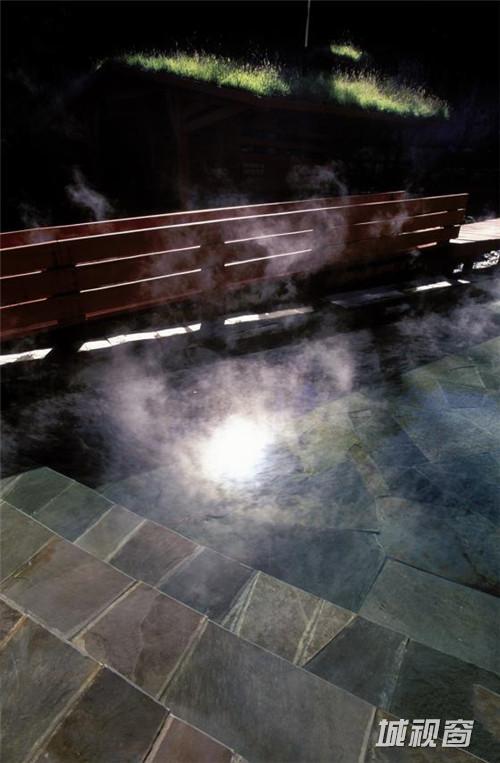 该项目位于智利南部湖区,距离圣地亚哥四百五十英里,处于一个原始森林中,可以说是一个火山国家公园。在这里,有许多的温泉水流域,沿着山脚缓缓流动,在溪流上面,覆盖着许多的石板。这里为游客提供了一个非常好的自然环境,游客可以在这里沿着木质人行桥自由漫步,也可以找个相对隐蔽的地方洗澡。温泉水在木管道池里流动,这些正好在人行道下,可以给木质行道加温,保持其干燥。在每一个温泉池旁边,都建有木质私人浴室和更衣室。人们可以在这里饮茶,聊天,在甲板上享受阳光,可以哪里都不去,充分享受这里的安静与祥和。