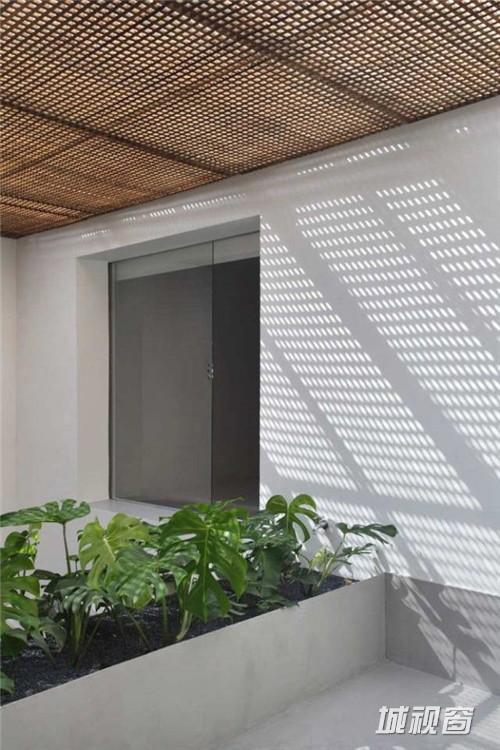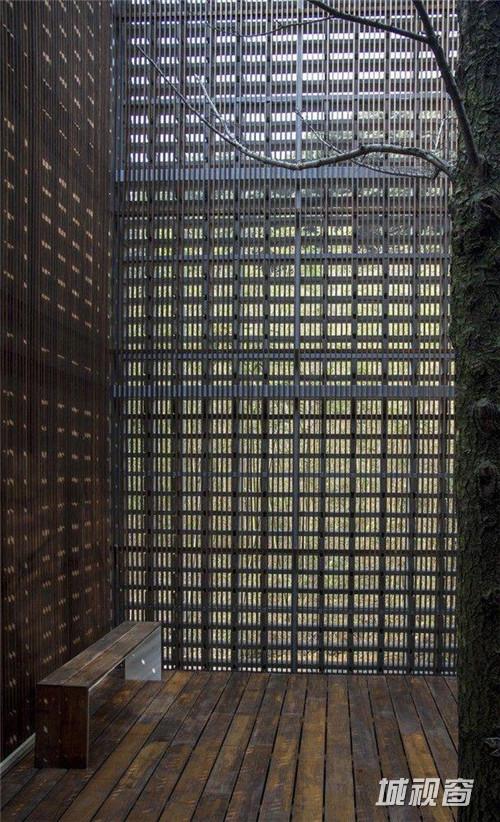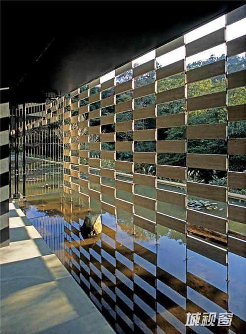 玻璃幕墙往往隔断了环境与主体的联系。不是只要使用透明的玻璃就能成为开放性建筑的。又比如京都的町屋(注:日本传统城市中面向街道的铺面房),面向街道的门面部分多装有木格子窗,这种木格子窗把室内外紧密地联系起来。要成功地做到这种联系,需对粒子的素材、尺度把握得非常细致慎重。首先要对构成外部环境的素材与尺度进行解析。对作为内外媒介的粒子进行设计时也要选择恰到好处的素材与尺度。