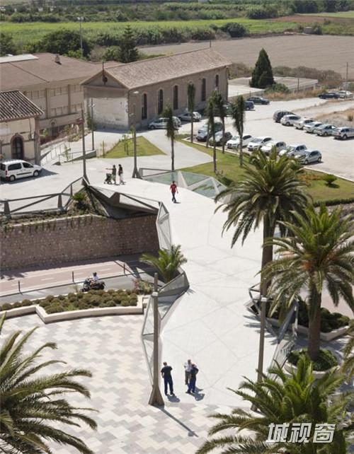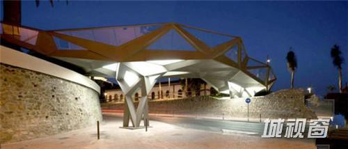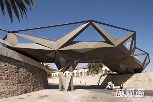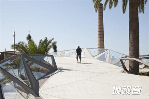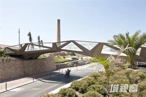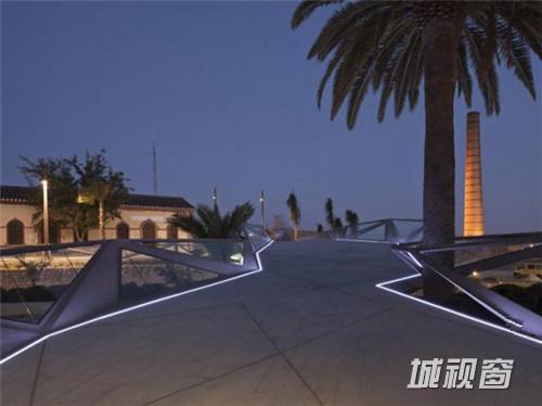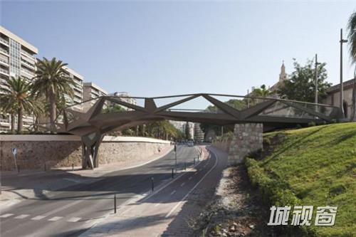 Motril步行桥越过城市主路,连接起存在高差的Explanadas花园和Pueblos de las Américas停车场。桥体的结构和造型都采取了相同的造型元素,充分适应周围的山体以及环境,并方便人们包括残疾人的使用。为了保证下方街道交通顺畅,桥主体里街道的距离最小为5米。通过将不同厚度的薄钢板切割折叠,形成连续的造型元素,LED灯巧妙的藏于其间,照亮桥体和道路。建筑师通过参数化设计以及脚本的编排,实现了这一优雅的设计。
