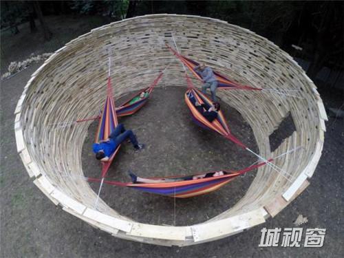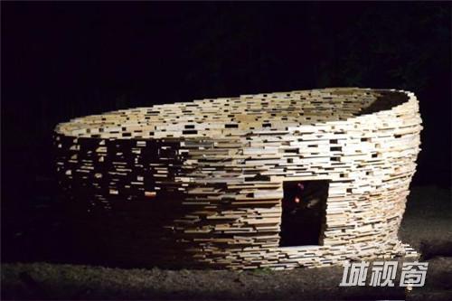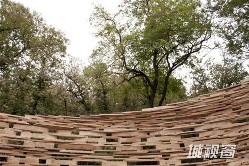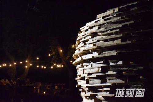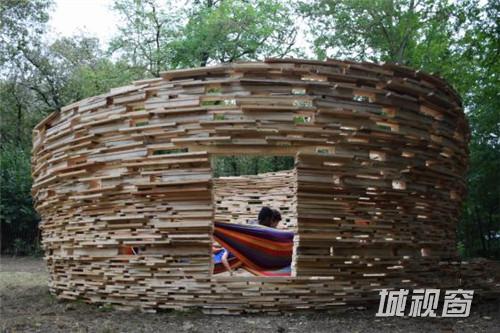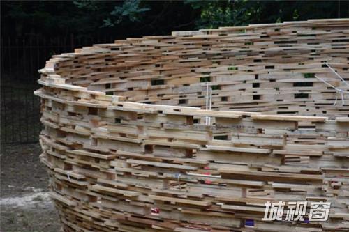 罗马超越建筑集团(简称BAG)为在意大利图斯库卢姆考古公园举行的Frammenti音乐节设计了名为“向上看”(looking up)的“实验性建筑”。这家公司由于将稻草捆用于建造房子而闻名,此次他们选择用木块堆叠的方式建造一个天文台。BAG设计的天文台与图斯库卢姆其他的天文台相似,但是他们设计的天文台木块中间有许多空隙,这样就能与户外的夜空和星星合为一体。天文台建造共使用了120块木块,每块木板和钉子都被重复使用。超越建筑集团的Paolo Robazza和合作建筑师Cecilia Tognoni 及Gilles Mascaro领导了设计团队,他们将这些木板堆叠成了一个不规则的圆圈形状。堆叠的建筑面内因此形成了各种裂纹,从而激起了外面的人的兴趣。天文台内部各层都有用绳子串起来的吊床,人们可以在这些吊床上静静沉思。