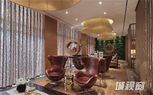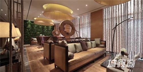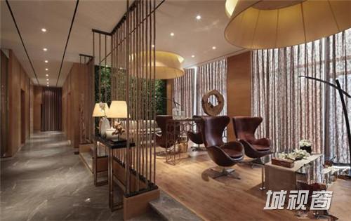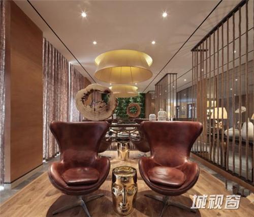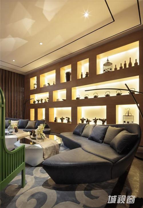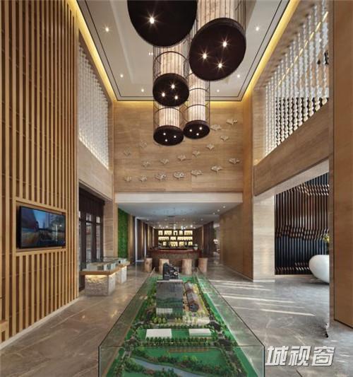 天王星豪庭“新中式混搭”售楼中心,大量原木色板材铺设的墙面为整体空间打造出大地色系的暖色基调,再辅以深棕色的装饰色彩,使原本清新自然的空间更加沉稳高雅。