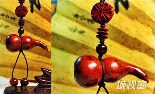 葫芦造型在紫檀、黄花梨、玉石、翡翠、琥珀中等都很常见。下图是紫檀的葫芦挂件,挂在车上很漂亮吧!