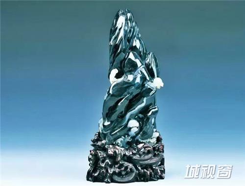下图就是青玉巧雕配紫檀座的福山寿海,虽然不大,却很有点物小势大的味道,俗称“气场很大”。
