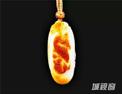 下图为和田籽玉雕刻而成的挂坠,巧用了玉石表面的红皮,鱼水对比非常生动。这样的挂坠,至少要好几捆毛爷爷……