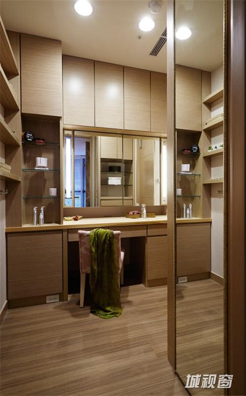 迎面河畔风景,是建案的最大卖点,为此设计者也充分发挥其优势,客厅、房间和泡澡浴池,都纳入一片旷达风景。设计方面,使用浅色与木皮营造温暖基底,储藏柜表面融入几何块状的跳色,多层次展现混搭新意,而精致时尚的镜面出落其中,以客製化理念,诠释双世代、双享受。