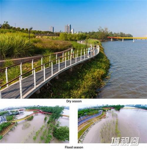 公园不只是为人们休闲建造的地方,也是为环境而建。其他2个特征是燕州湿地生态系统,用来保护现存的湿地,以及台地风格的堤坝,与洪水为友,使公园可被淹没。