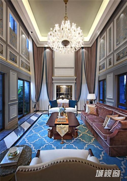 本案在空间布局上打破常规,将天花、墙面、陈设等设计融为一体,整个别墅室内设计呈现出一种兼具机能性与艺术性的独特美感。精炼的复古墙饰搭配雅致的花鸟墙纸,富有质感的华丽材质与巧妙制衡的色彩比重营造出丰富的空间层次感。璀璨吊灯的辉映下,奢华和舒适高度融合,高雅欧式的尊贵气质和卓尔不群的气度不彰自显。