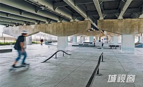 今年春天,一场突如其来的大雨降临之后,大约20位年轻男子奔跑到地道公园去投篮,他们很庆幸头上有天桥为他们遮风挡雨。一些中学生滑着滑板在起伏的金属杆和混凝土窗台上滑过,还有的则从喷泉上飘过。