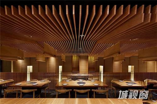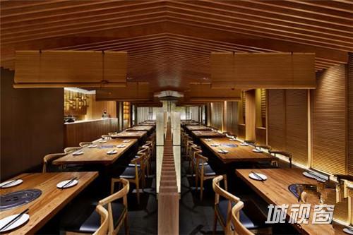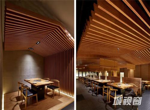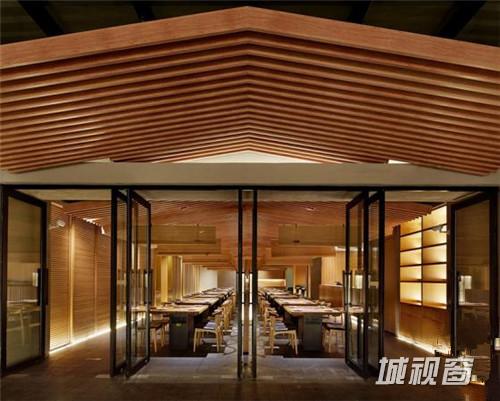 设计理念抽象的还原了日本大阪鹤桥地区的拥挤的街道建筑形象, 餐厅的两个入口安排在”山墙” 上,进入餐厅三角型的坡顶映入眼帘,我们刻意压低房檐,意图用强烈的三角形房顶来表达日式建筑与山林的关系。