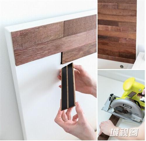 【2】白色的床头板也太无聊了,干脆再买一堆木板条裁成块自己加工。突然间格调就来了呢。